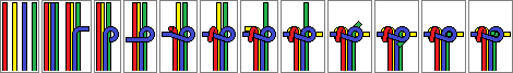 When you move to your next row of knots, the two rightmost strands of the knots on the previous rows will form the two leftmost for the knots on the next row.